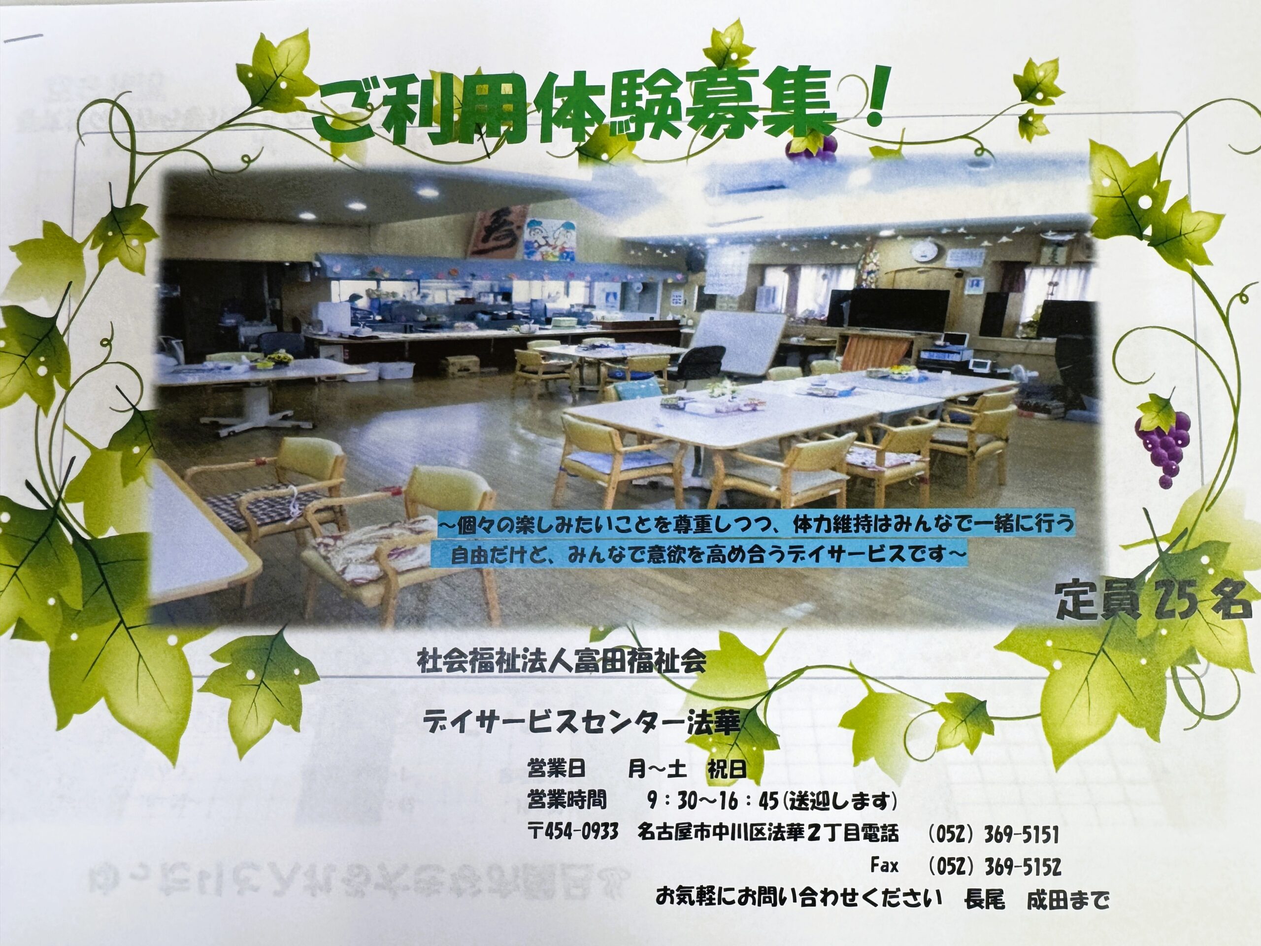 | 事業所名 | デイサービスセンター法華 |